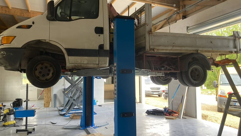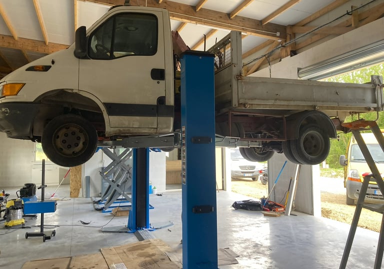 Entretien et réparation de véhicules automobiles, camping-cars et utilitaires.